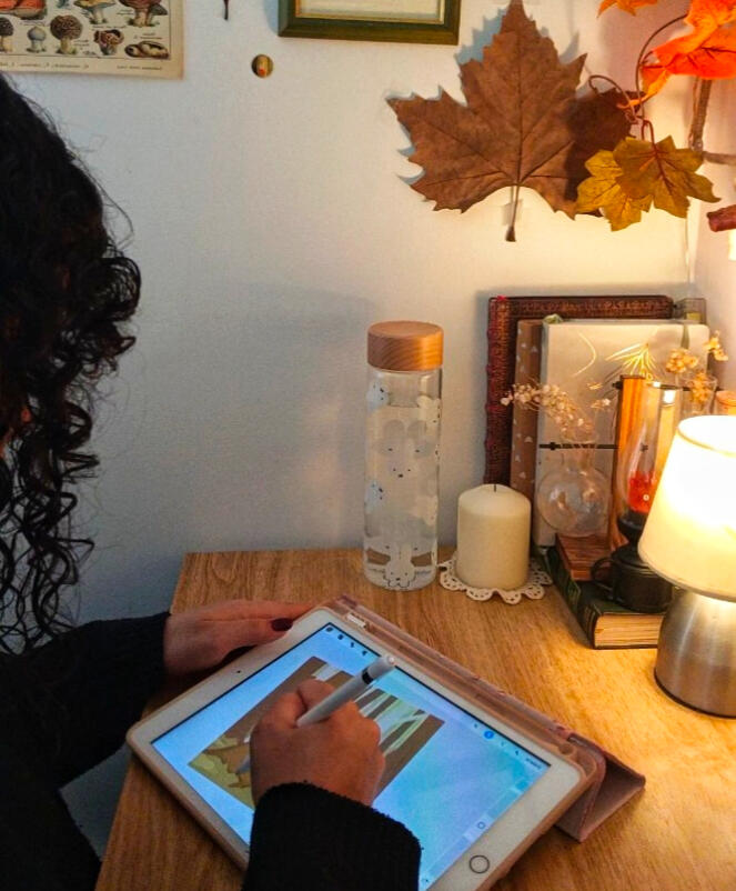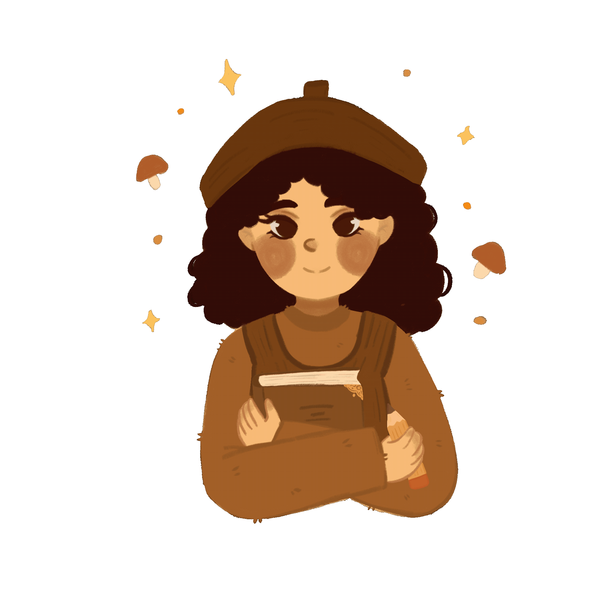 Je souhaite que mon travail soit un cocon visuel, aux couleurs chaudes, inspiré par la campagne, le folklore fae, la fantasy, mais aussi par les cultures d’Afrique du Nord et du Moyen-Orient. Chaque illustration est pensée comme une invitation à rêver, à se sentir bien, représenté·e et touché·e, peu importe qui l’on est.